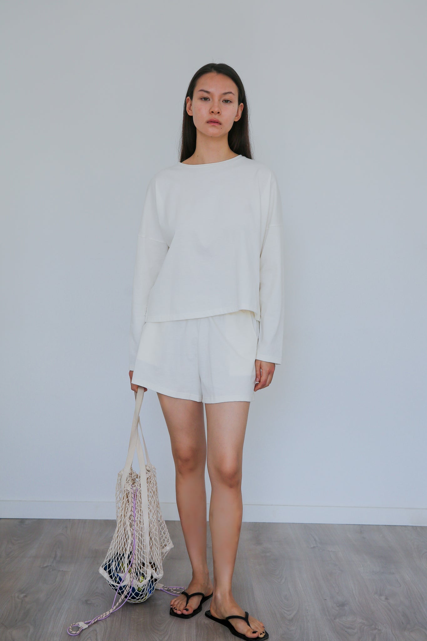Crafted from 100% natural cotton and produced in limited quantities, the set features a dropped shoulder shirt and matching shorts with an elastic waistband for a sporty yet refined look. Designed in Italy and handmade in Portugal, each piece is individually hand cut and hand finished by skilled tailors.