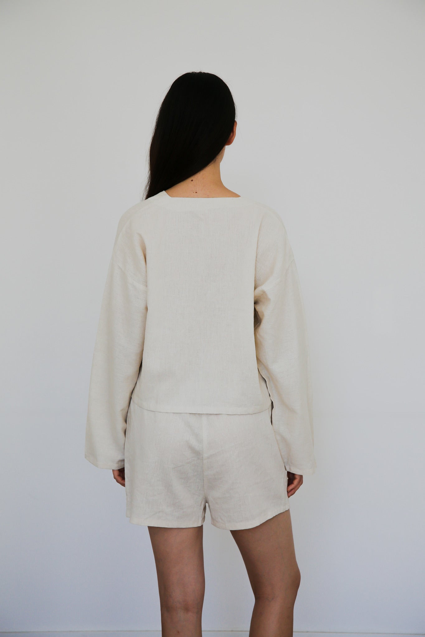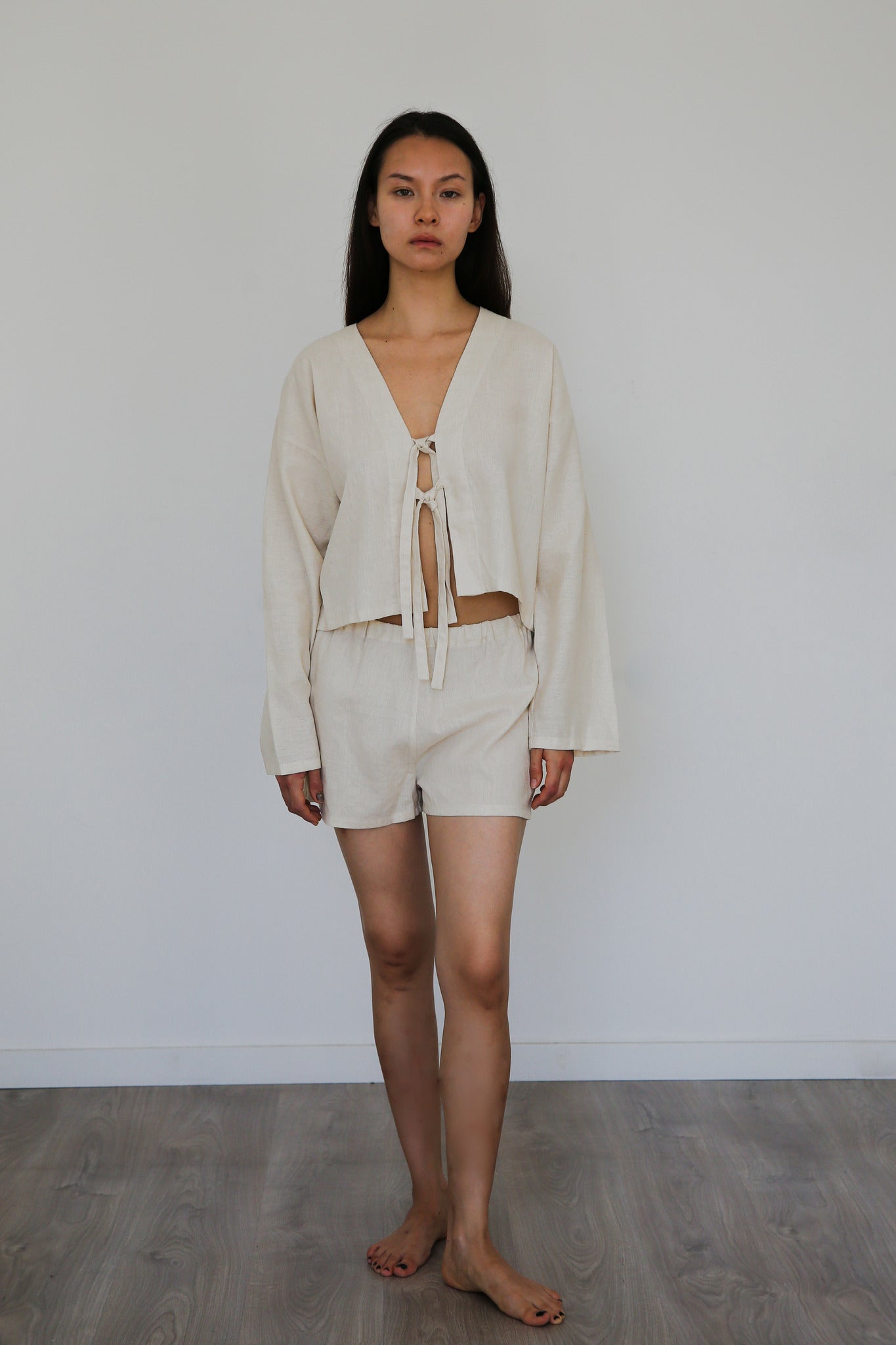 Crafted from 100% natural linen in its original, undyed tone and produced in limited quantities, the Dune Set features a relaxed silhouette with a soft blousa top finished with adjustable strings and matching shorts with an elasticated waist. Designed in Italy and handmade in Portugal, each piece is individually hand cut and hand finished by tailors.